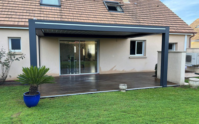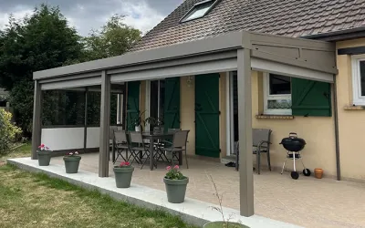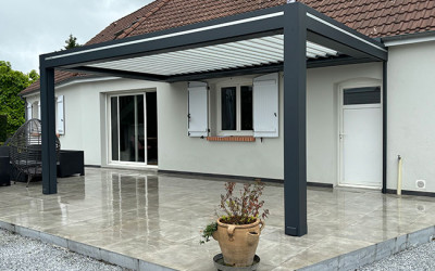 Pour les amateurs de vie en plein air, Véranda Home propose également des pergolas modernes et fonctionnelles. Ces structures, disponibles en version bioclimatique ou classique, permettent de créer des espaces ombragés et agréables dans les jardins ou sur les terrasses. Les pergolas bioclimatiques, équipées de lames orientables, offrent une gestion optimale de la lumière et de la ventilation, permettant ainsi de profiter de l’extérieur quelles que soient les conditions météorologiques.