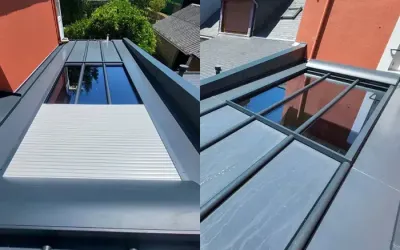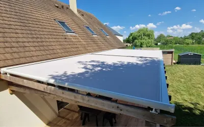 Les stores extérieurs régulent luminosité et chaleur tout en préservant l’intimité. Conçus sur mesure, ils s’intègrent harmonieusement à l’architecture et assurent une protection durable. Le store de toiture, quant à lui, limite l’effet de serre et maintient une température agréable en toute saison, tout en protégeant le mobilier des rayons UV.