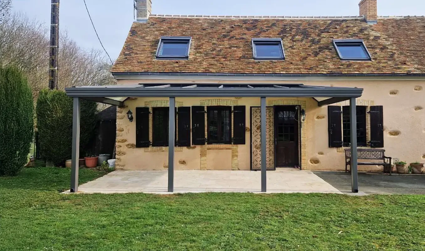 Toiture en verre de sécurité : Elle permet de vous abriter de la pluie tout en laissant passer un maximum de lumière naturelle, créant ainsi un espace lumineux et accueillant.