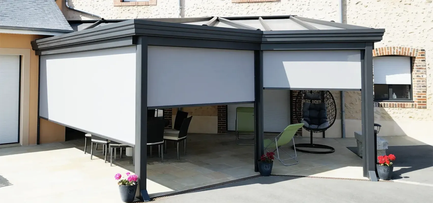 Plutôt que de choisir entre les deux, il est souvent pertinent de les associer. Les stores d’extérieur assurent une protection solaire maximale, tandis que les stores d’intérieur apportent confort visuel et esthétique. Ensemble, ils transforment une véranda ou une extension en un espace de vie à la fois agréable, élégant et fonctionnel, en toute saison.