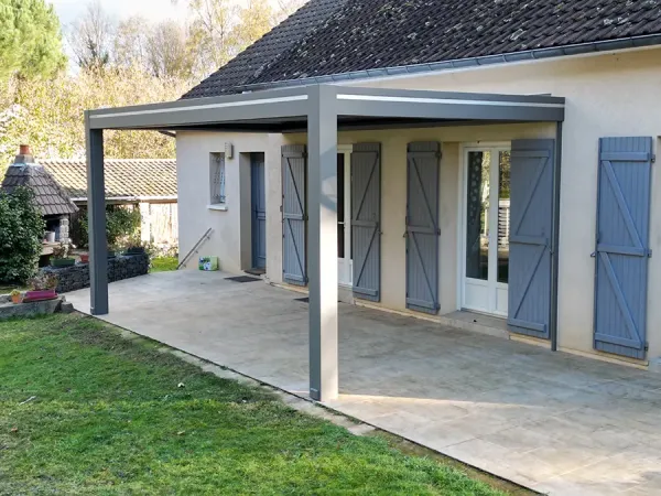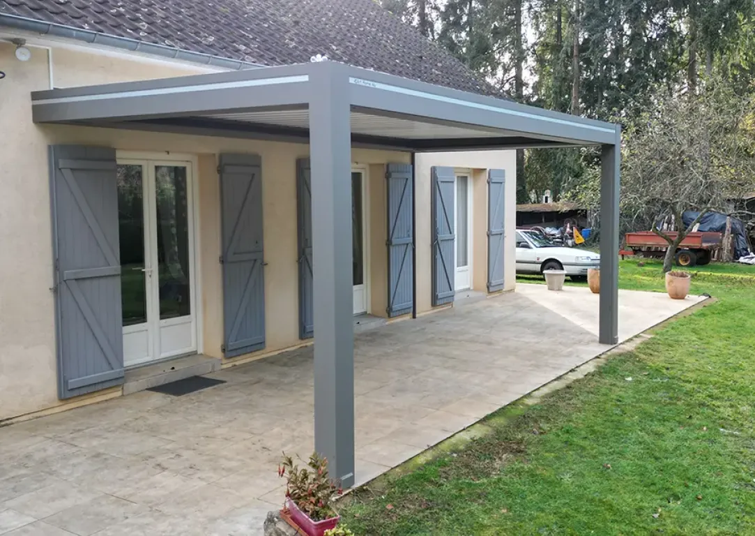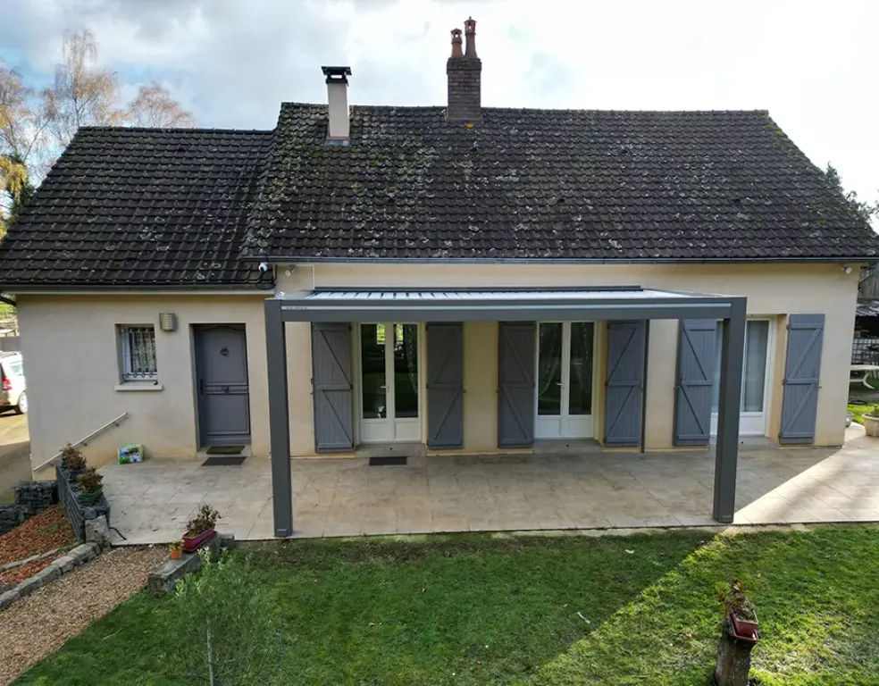 Véranda Home, expert en pergola bioclimatique aluminium près du Mans, a su relever les défis techniques liés à la fixation sur une terrasse existante, garantissant stabilité et étanchéité parfaite de l’ensemble.