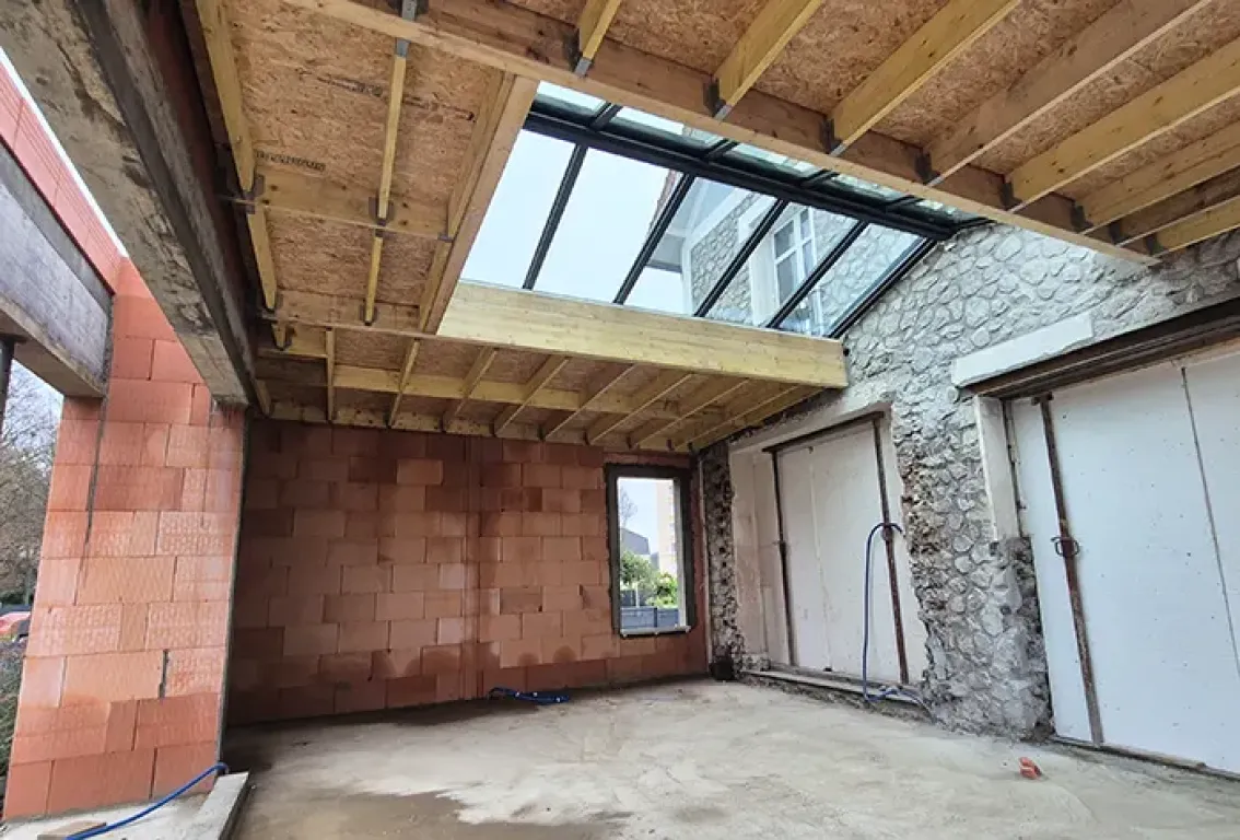 Installation d'une verrière de toiture en Sarthe (72) par Véranda Home