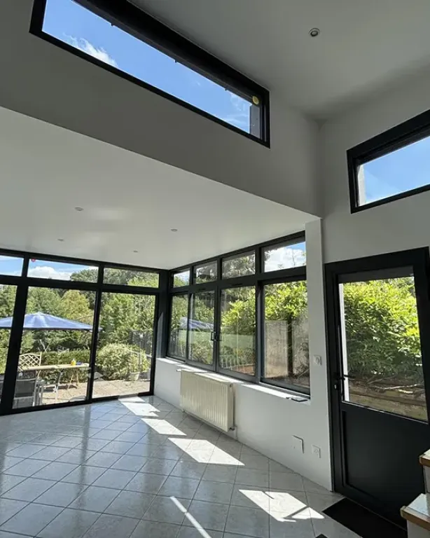 Au-delà de son design, l'extension atelier d'artiste moderne est un concentré de performance et de confort. Grâce à l'utilisation de l'aluminium à rupture de pont thermique et de vitrages à haute isolation, elle assure un confort thermique optimal été comme hiver. Vous profitez ainsi d'une pièce agréable à vivre toute l'année, sans craindre les déperditions d'énergie. Ce type de projet est une excellente occasion de repenser l'isolation globale de votre habitat, car notre équipe transforme votre maison avec des menuiseries modernes pour un gain de confort et de lumière.