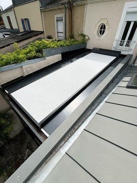 Pour un confort maîtrisé, l’extension est équipée d’un store motorisé sur le toit. Ce dispositif ingénieux permet de réguler l’intensité lumineuse selon les besoins et les saisons. En été, il protège efficacement contre les rayons du soleil tout en conservant une atmosphère agréable à l’intérieur. En hiver, il peut être totalement ouvert pour profiter d’un maximum de clarté et de chaleur naturelle. Cette solution intelligente garantit un bien-être optimal en toute saison.