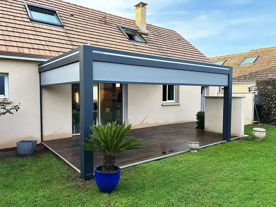 Véranda Home imagine également vos aménagements extérieurs pour un confort optimal toute l’année. La pergola bioclimatique à lames orientables régule la lumière et la température, tandis que la pergola à store enroulable offre une protection modulable et que la pergola à toit fixe garantit un abri solide et élégant. Nos experts interviennent aussi pour la création de préaux fermés, de préaux à toiture vitrée ou de préaux pergolas pour abriter vos espaces extérieurs. Pour vos véhicules, nous concevons des carports sur mesure : un carport abri de voiture pour protéger votre automobile et vos deux-roues, ou un carport pour camping-car adapté aux gabarits plus imposants. Pour finaliser votre aménagement, nos menuiseries aluminium incluent la pose de portails et clôtures ainsi que de portes d’entrée et verrières élégantes. Chaque détail est pensé pour sublimer votre habitat et renforcer son confort au quotidien.