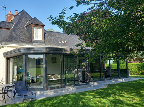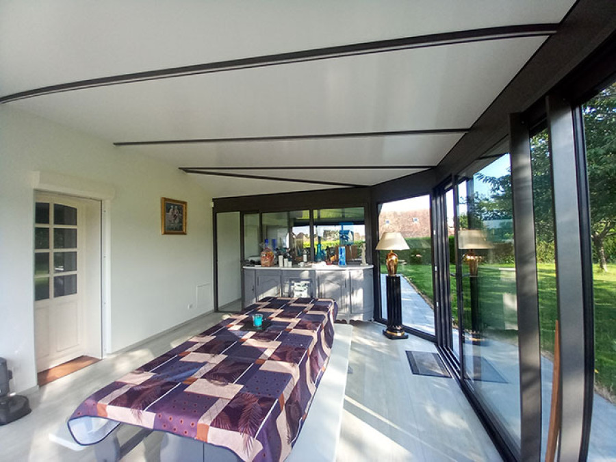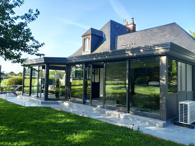 Grâce à des vitrages spécifiques et des menuiseries en aluminium à rupture de pont thermique, la véranda conserve une température agréable en toute saison. Cela permet de réduire les pertes de chaleur en hiver et d'éviter une surchauffe en été, assurant ainsi une consommation énergétique maîtrisée.