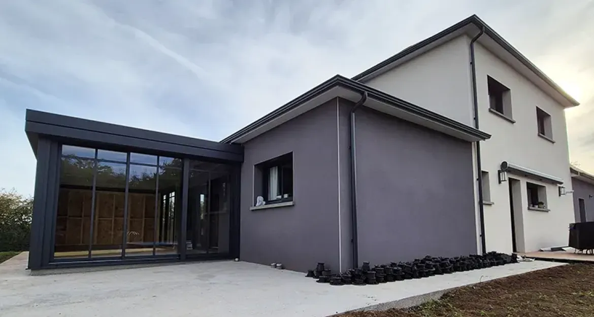 Cet agrandissement de maison en Sarthe a été pensé pour devenir un véritable prolongement de l'habitat existant, apportant une sensation d'espace et une nouvelle perspective sur l'extérieur. L'esthétique de l'atelier d'artiste, avec ses grandes verrières, offre un cachet unique qui valorise l'ensemble de la propriété.