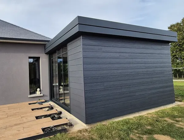 L'extension à toit plat de style atelier séduit par sa modularité et son design intemporel. Sa structure en menuiseries aluminium à rupture de pont thermique garantit une isolation parfaite, tandis que ses larges ouvertures effacent la frontière entre l'intérieur et l'extérieur. Cet espace peut se transformer en salon, bureau, salle à manger ou espace de création, s'adaptant à tous les besoins. Grâce à une conception sur mesure, comme cette extension lumineuse de maison, elle s'intègre harmonieusement à l'architecture, qu'elle soit traditionnelle ou contemporaine. Le choix d'une extension avec verrière au Mans est une promesse de lumière et de volume.