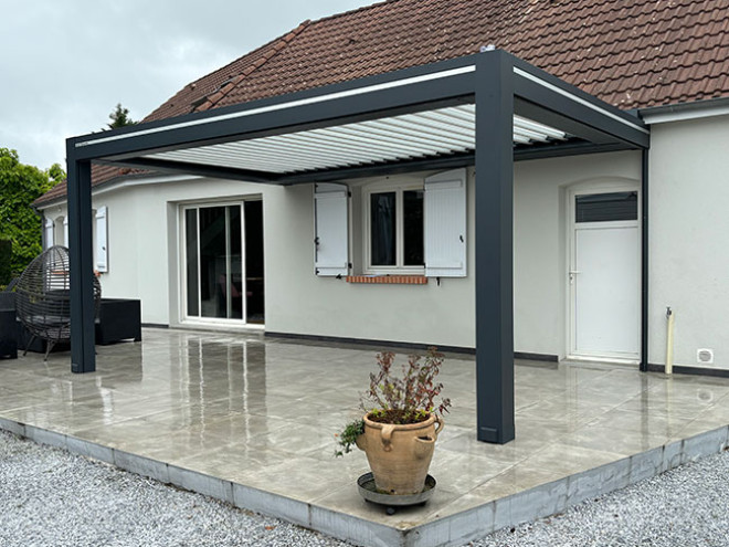 Une pergola bioclimatique en aluminium sur mesure par Véranda Home