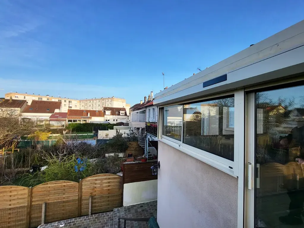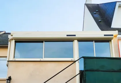 Afin de mieux gérer l’ensoleillement et la chaleur, des volets roulants solaires ont été installés. Ce système autonome permet de réguler efficacement la température à l’intérieur de la véranda. Les occupants peuvent ainsi profiter de la lumière naturelle tout en conservant une atmosphère plus fraîche lors des fortes chaleurs.