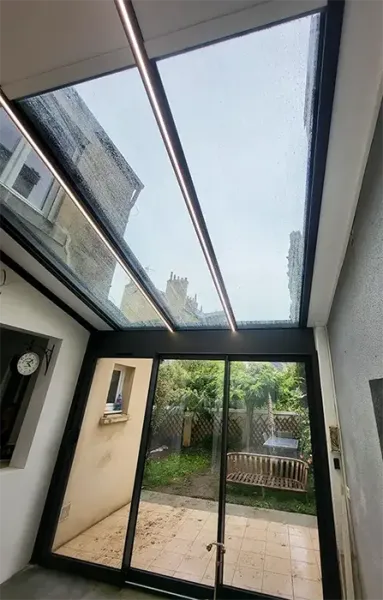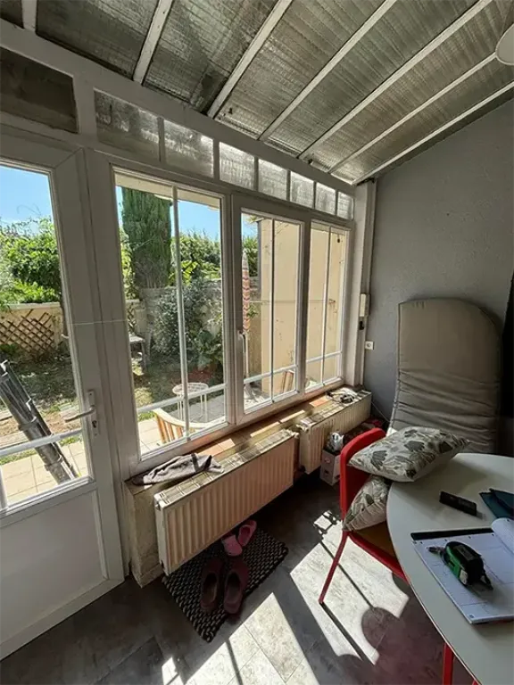 Une rénovation réussie passe par une approche globale. Nous intervenons sur tous les aspects de votre véranda pour en optimiser les performances et l'esthétique. Cela inclut souvent le remplacement complet de la toiture pour une meilleure isolation, comme pour ce projet de rénovation de toiture. Nous modernisons également les ouvertures en remplaçant les anciennes menuiseries par des vitrages haute performance, que ce soit pour des fenêtres coulissantes ou des portes. Pour un contrôle optimal de la lumière et de la chaleur, nous procédons à l'installation de volets roulants en façade et de stores pour toiture. Ces améliorations transforment votre véranda en une pièce à vivre fonctionnelle, comme en témoignent nos différentes réalisations d'extensions au Mans et dans les environs, de l'extension de maison à la rénovation complète à Bessé-sur-Braye.
